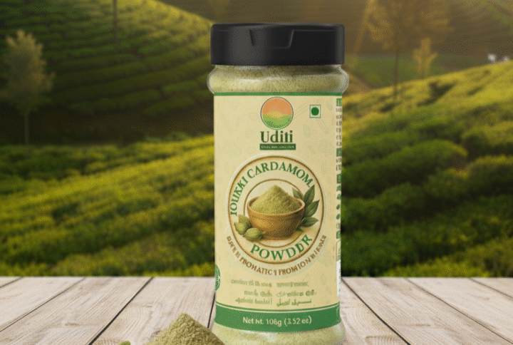 Uditi Idukki Cardamom Powder | Finely Ground Green Cardamom | Strong Fragrance & Bold Flavor | Single-Origin Spice | Ideal for Tea, Sweets, Curries | 100g Pack